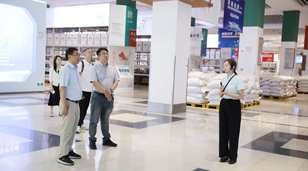 在參觀神農(nóng)倉時,工作人員詳細(xì)介紹交易中心創(chuàng)新打造的神農(nóng)倉,主要依據(jù)麥德龍倉儲式商超理念來實(shí)現(xiàn)市場升級換代,完成市場產(chǎn)地化,依托交易中心“N+50”全國資源布局體系,匯聚全國藥材主產(chǎn)地一手貨源??疾靾F(tuán)一行駐足在智慧交易屏前,詳細(xì)了解神農(nóng)倉線上掛網(wǎng)、線下展示、遠(yuǎn)程視頻實(shí)時看貨的交易模式,并查看了黃山產(chǎn)區(qū)交易藥材,對交易中心打造的線上線下相結(jié)合的中藥材市場流通體系給予高度認(rèn)可。