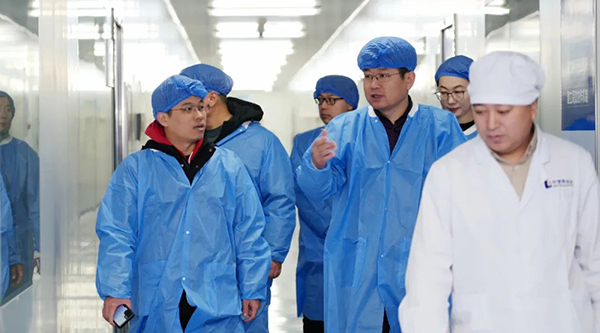 在珍寶島凍干制劑生產(chǎn)車間,羅培原一行參觀了以注射用血塞通為代表的智能制造生產(chǎn)全流程,重點了解了核心生產(chǎn)設(shè)備、生產(chǎn)工藝及生產(chǎn)質(zhì)量控制等,對企業(yè)智能制造水平給予好評。